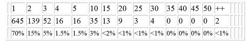 The chart above is the frequency of visits. 70% have only visited once. Another 15% stopped by twice. The number drops off rapidly after 3 visits (5%). A good factor is most views of my photos come from non-scribers through Twitter, Facebook, Google searches and other as yet unknown (to me) sources. Those views did not just happen. I made posts to Facebook groups which might like my pictures. I utilize a Twitter feed and widely employ hashtags [#streetphotography #BlackandWhitephoto #PhotooftheDay] et al. A good description with the images is essential for Google to index them. Leaving your uploads titled as IMG_1234.JPG is wasting that way of getting views. If your intentions are as a hobby, don’t worry it will remain known only to you. Even your friends and family are a hard-sell to get them to look.